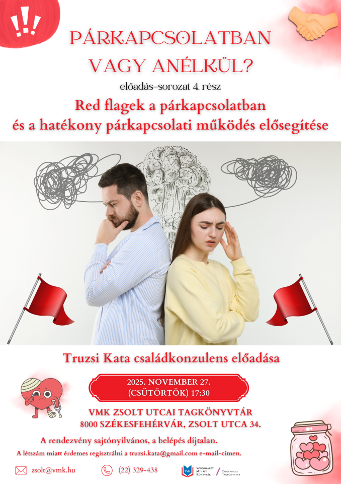 Red flagek a párkapcsolatban, és a hatékony párkapcsolati működés elősegítése. Truzsi Kata családkonzulens előadás-sorozatának 4. és egyben záró előadása.
