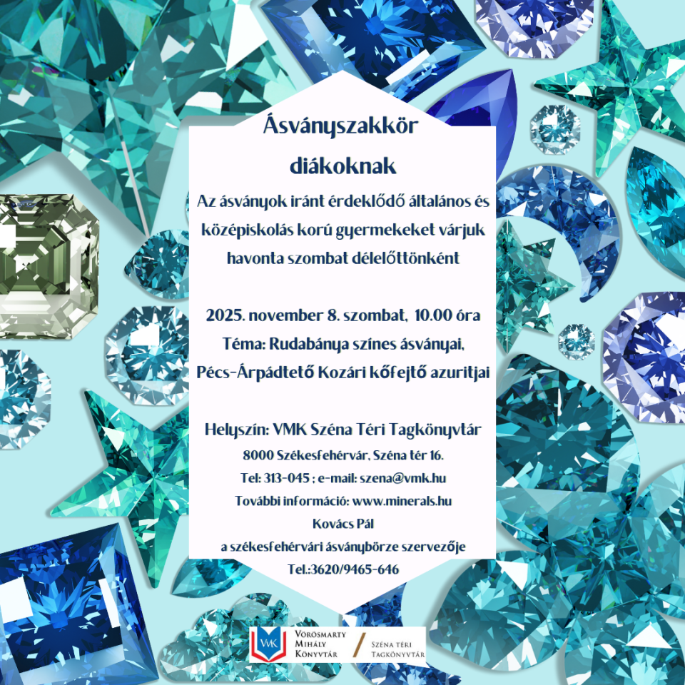 A novemberi téma: Rudabánya színes ásványai, Pécs-Árpádtető Kozári kőfejtő azuritjai.