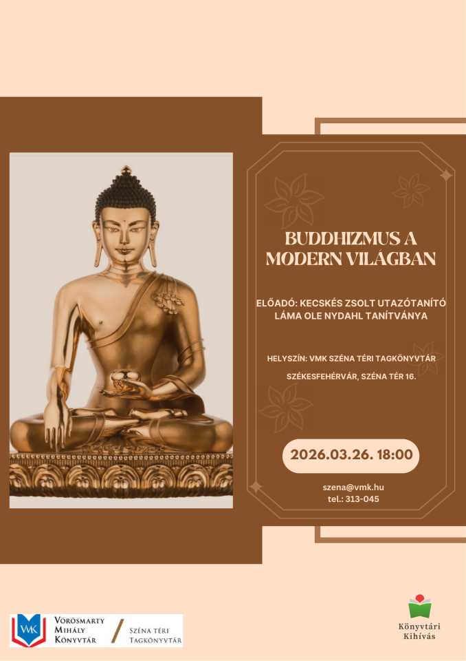 Kecskés Zsolt utazótanító, Láma Ole Nydahl tanítványának előadása a Vörösmarty Mihály Könyvtár Széna Téri Tagkönyvtárában 2026. március 26-án, csütörtökön 18 órától.
