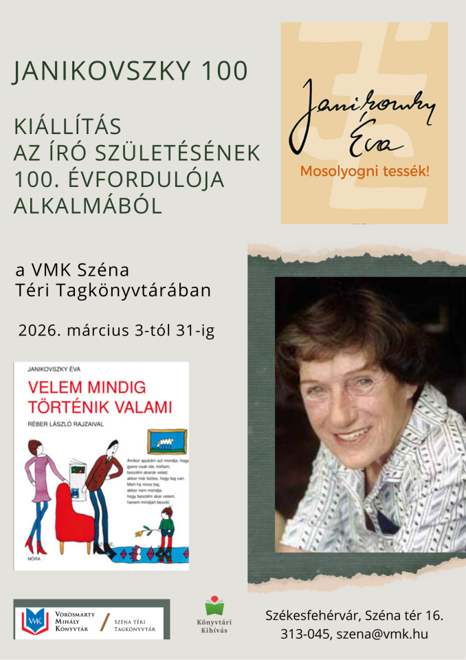 Kiállítás a Széna Téri Tagkönyvtárban Janikovszky Éva születésének 100. évfordulója alkalmából.