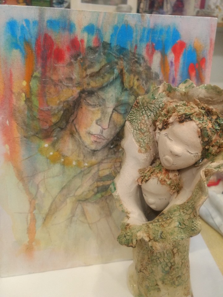 Szatzkerné Piroska kerámia szobrokat, kisplasztikákat, ékszereket készít, valamint rajzol és fest (grafit, akvarell, pasztell technikával). Az alkotáshoz az ötletet mindig a pillanatnyi hangulata határozza meg. Így készültek a korábbi kiállításain bemutatott agyagfejek, az anyasághoz kapcsolódó kisszobrok, a karácsonyi hangulathoz kötődő angyalszobrok, vagy gyermekkorának kedvenc mesealakjai.