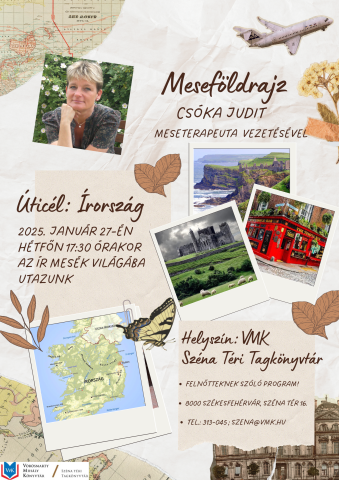 Csóka Judit meseterapeuta vezetésével ezúttal az ír mesék világába utazunk 2025. január 27-én, hétfőn 17:30-tól a Vörösmarty Mihály Könyvtár Széna Téri Tagkönyvtárában.