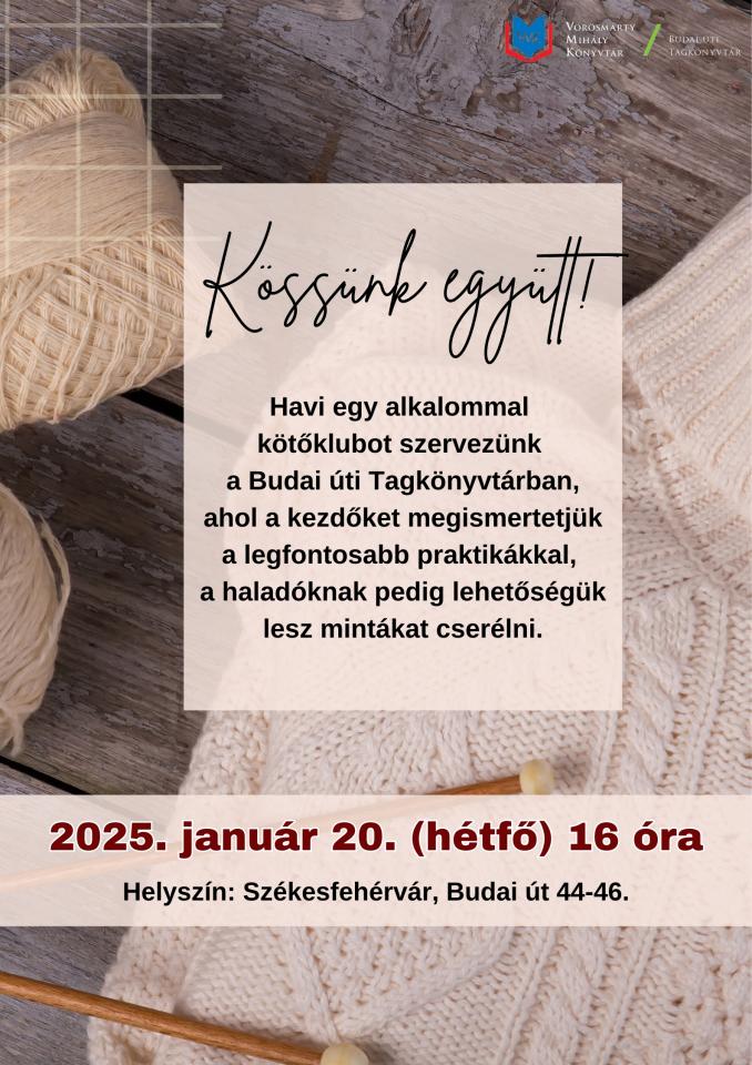 Havi egy alkalommal kötőklubot szervezünk a Budai úti Tagkönyvtárban, ahol a kezdőket megismertetjük a legfontosabb praktikákkal, a haladóknak pedig lehetőségük lesz mintákat cserélni.