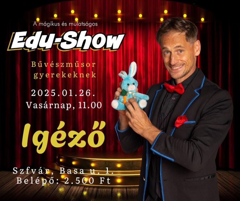 Edu már 9. éve lép fel folyamatosan az Igéző színpadán, és ezzel gyermekek százainak nyújtott ez idő alatt életre szóló élményt. A műsor során használt színes fények, hangeffektusok teszik igazán varázslatossá ezt a vasárnap délelőtti 45 percet.