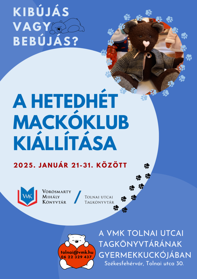 Februárhoz közeledve kérdés, milyen tavaszban lesz részünk - a Hetedhét Mackóklub kiállítása 2025. január 22. és 31. között tekinthető meg a Vörösmarty Mihály Könyvtár Tolnai Utcai Tagkönyvtárában.