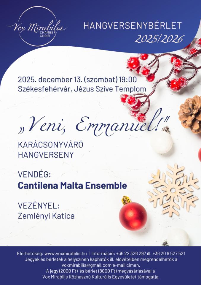 Az adventi időszak csendes várakozását és bensőséges ragyogását különleges zenei élmény koronázza meg a máltai Cantilena Malta Ensemble és a Vox Mirabilis Kamarakórus közös koncertjén.