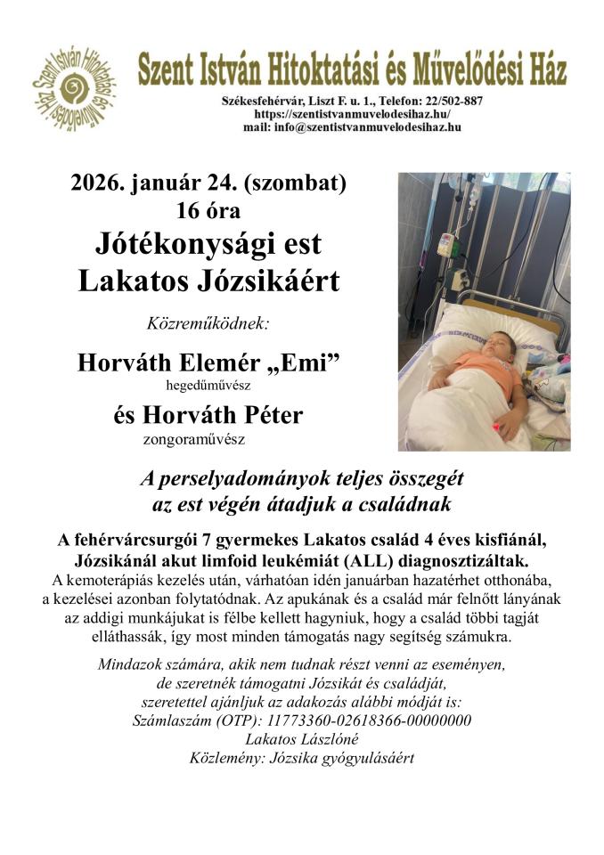 A fehérvárcsurgói 7 gyermekes Lakatos család 4 éves kisfiánál, Józsikánál akut limfoid leukémiát (ALL) diagnosztizáltak.